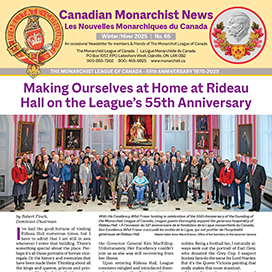 Y compris des documents en français, NMC propose un éventail de documents rarement vus ailleurs. Outre ses propres auteurs, il comprend souvent des auteurs tels que Christopher McCreery et Pere Jacques Monet, ainsi que des articles originaux sur des sujets allant du coût de la Couronne et des activités de la famille royale au Canada, au rôle du gouverneur général et des lieutenants-gouverneurs. Il passe en revue des ouvrages récents présentant un intérêt pour les monarchistes. Il fait l’éloge ou la critique de personnalités et d’institutions dans « Crowns and Maces ». Il vous alerte sur les questions controversées. Il rend compte des initiatives et des activités de la Ligue. Il propose une sélection d’articles dans « Ventes de sujets ».